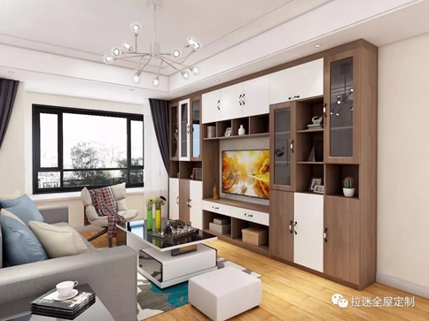 我们可以根据空间的大小来选择不同的组合方式,如果房间宽敞可以采用整面柜体墙的电视柜,突出整体感又不怕占用太多空间;