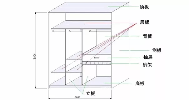 投影面积:不管衣柜内部格局如何设计,隔板多少,衣柜投影在墙上的面积乘以单价就是板材总价。